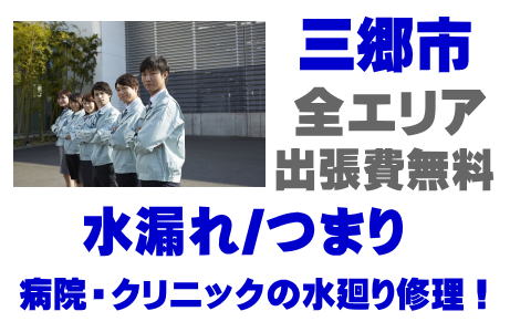 / 三郷市国立病院水道修理 / 三郷市私立病院水道修理 / 三郷市歯科医院漏水修理 / 三郷市小児科医院水道工事 / 三郷市産婦人科医院水道業者