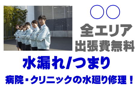 / ○○病院排水パイプつまり / ○○病院給湯器修理 / ○○クリニックシンク水漏れ / ○○専門病院キッチン水漏れ / ○○公立病院洗面台修理