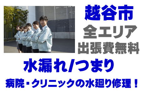 / 越谷市国立病院水道修理 / 越谷市私立病院水道修理 / 越谷市歯科医院漏水修理 / 越谷市小児科医院水道工事 / 越谷市産婦人科医院水道業者